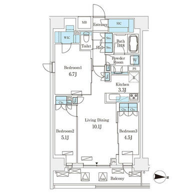 | 間取り | 3LDK | 主要採光面 | 東 |