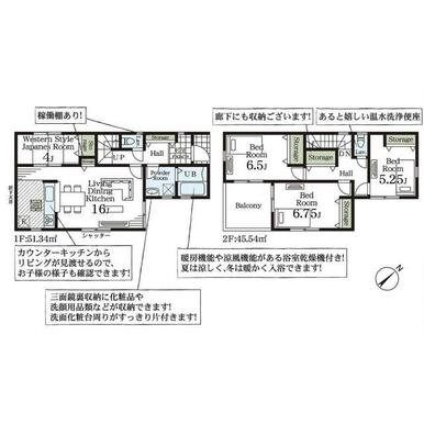 | 設備 | システムキッチン 床下収納 モニタ付インターホン ディンプルキー 浄水器 浴室乾燥機 追焚機能 シャワー付洗面化粧台 人感センサー付照明 ダウンライト 照明器具 | ||