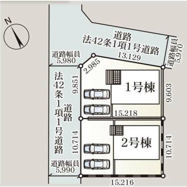 号棟番号:1号棟 角地緩和 法第22条区域 建物面積に別途ルーフバルコニー約9.72平米有り |