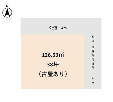 | 土地面積 | 公簿 126.53㎡ | 坪数 | 38.27坪 | 坪単価 | 8.63万円 |
