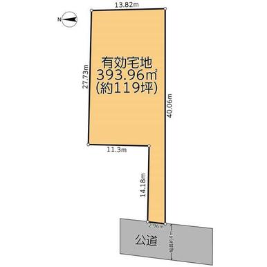 | 土地面積 | 393.96㎡ | 坪数 | 119.17坪 | 坪単価 | 92.31万円 |